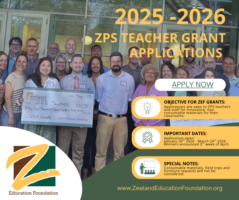 The Zeeland Education Foundation (ZEF) ONLY accepts proposals from employees of Zeeland Public Schools.