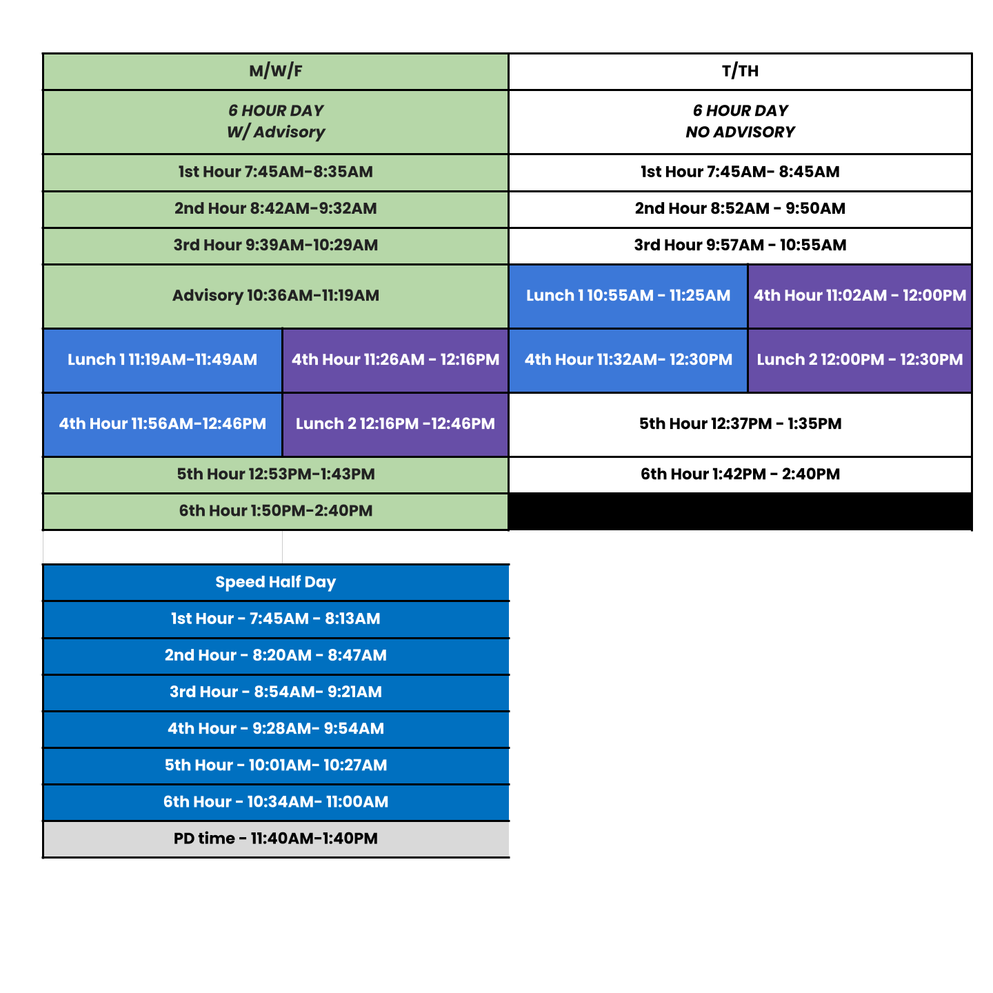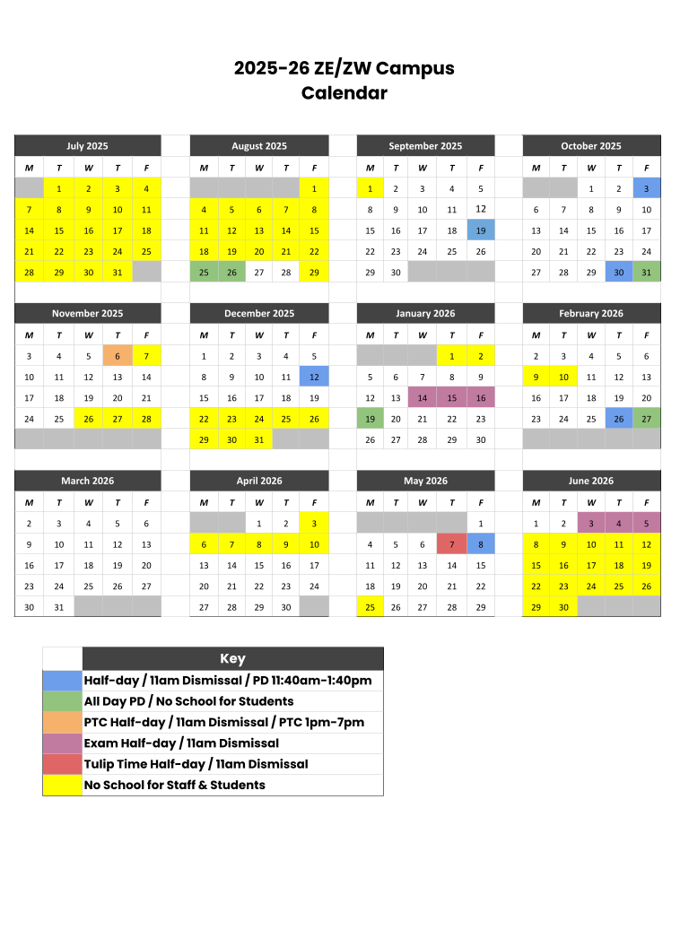 2025-26 ZE/ZW Campus Calendar & Daily Schedules